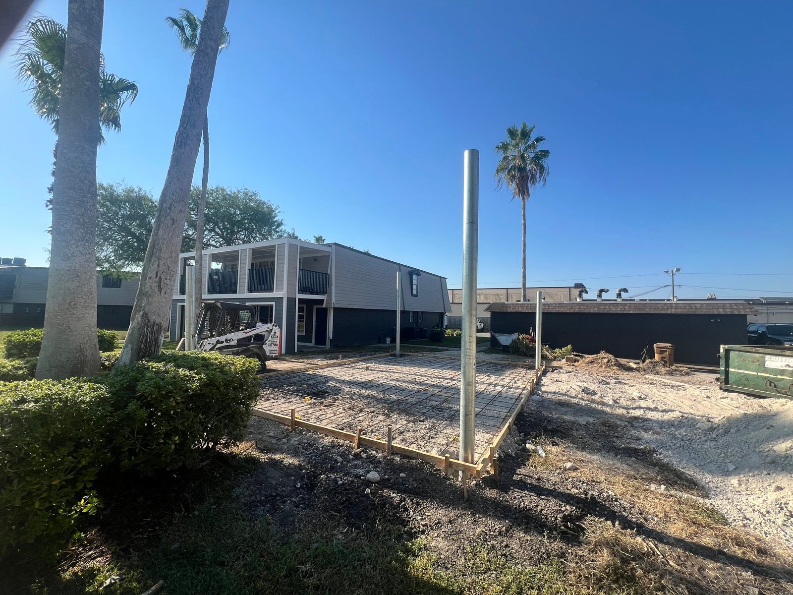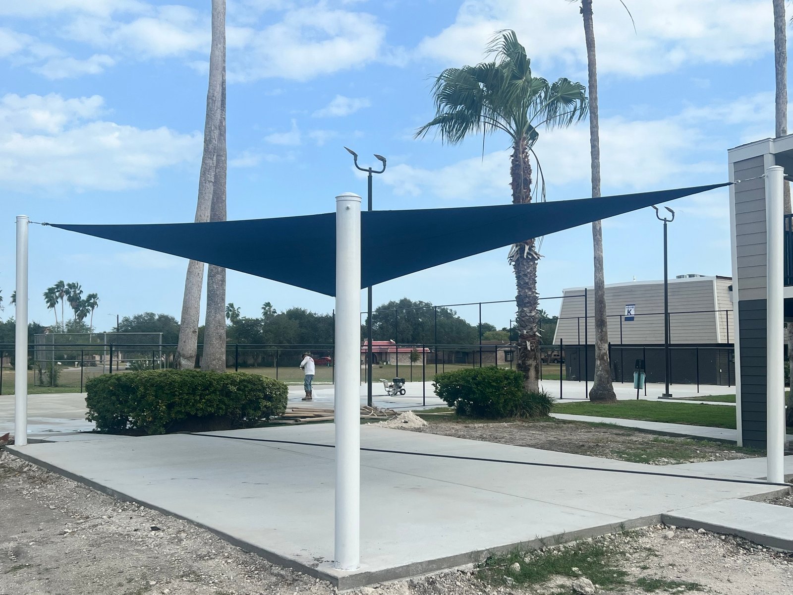 We have recently completed the construction of a shaded picnic area, designed to improve outdoor gatherings and offer a cozy spot for relaxation. The project included installing 6-inch poles 5 feet underground with rebar cages to ensure enduring stability.
