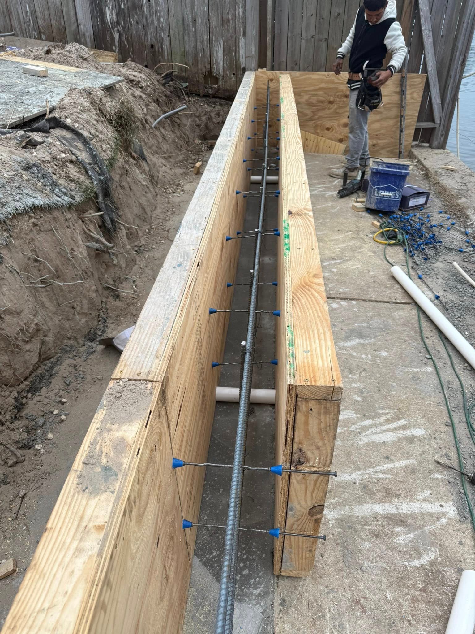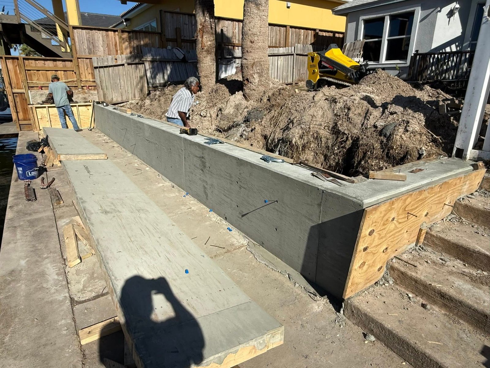 Concrete retaining wall install
